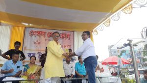অথচ সকালের দিকে যখন সকলে নিজের নিজের কাজে ব্যস্ত কার্জনগেট চত্বরকে দেখলে কেউ বলবে না যে কয়েকঘন্টা পরে সেখানে কোন অনুষ্ঠান হতে যাচ্ছে। তারপর হঠাৎ করে ডেকরেটার্সের গাড়ি আসা, গাড়ি থেকে বাঁশ নামিয়ে মঞ্চ বাঁধা, সাদা হলুদ কাপড়ের গায়ে বেঙ্গল প্রেস ক্লাবের ব্যানার সকলের নজর কাড়ে। এদিকে বিশিষ্ট সাংবাদিক তথা বেঙ্গল প্রেস ক্লাবের সভাপতি জয়প্রকাশ দাস সকাল হতে না হতেই কলকাতা থেকে বাসে করে হাজির। তার সঙ্গে হাজির আর এক বিশিষ্ট সাংবাদিক তন্ময় প্রামাণিকও। সাংবাদিক তথা প্রেস ক্লাবের যুগ্ম সম্পাদক বিধান চন্দ্র ও সুজাতা মেহেরা মঞ্চে হাজির হয়ে নিজের দায়িত্ব পালন করতে শুরু করে দেয়। এদিকে মঞ্চের কাজ চলাকালীনই হাজির সাংবাদিক বিজয় প্রকাশ দাস, সদন সিনহা, ঋষি গোপাল মন্ডল, অসিত রাউত, গোপাল সোনকার, সুখরঞ্জন সাহারা। সকলে মিলে কাজ ভাগ করে নিয়ে মঞ্চ গোছানোর কাজ শুরু করে দেয়। ততক্ষণে সাধারণ মানুষের ভিড় জমতে শুরু করেছে।